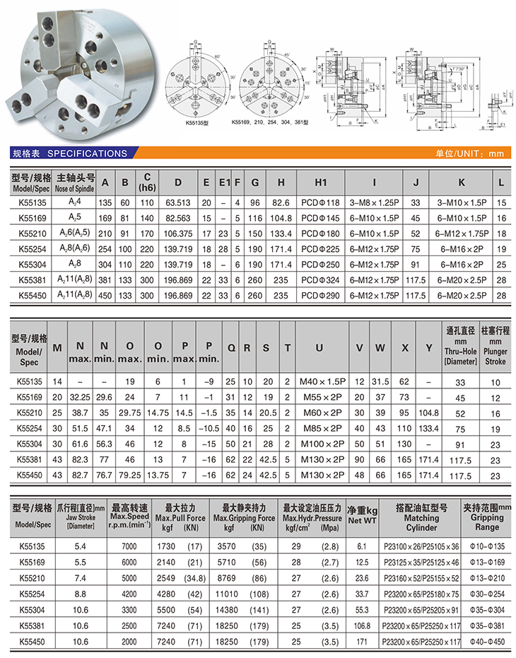 K55 三爪高速中實(shí)動(dòng)力卡盤(pán)
